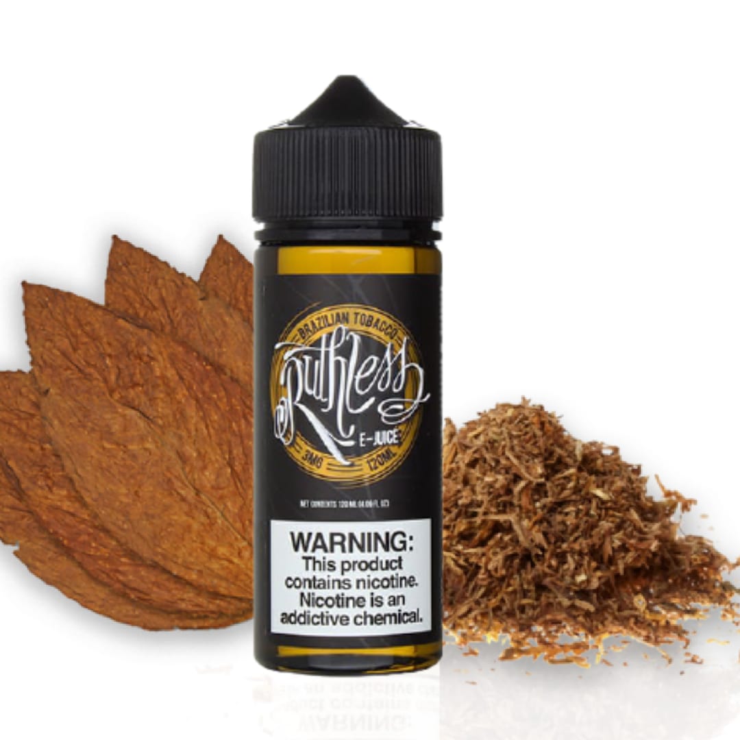Brazilian Tobacco By Ruthless, Inhale and exhale some subtle splendor of tobacco that continues to linger along your palate for quite some time, long after the vapor has escaped from your mouth.