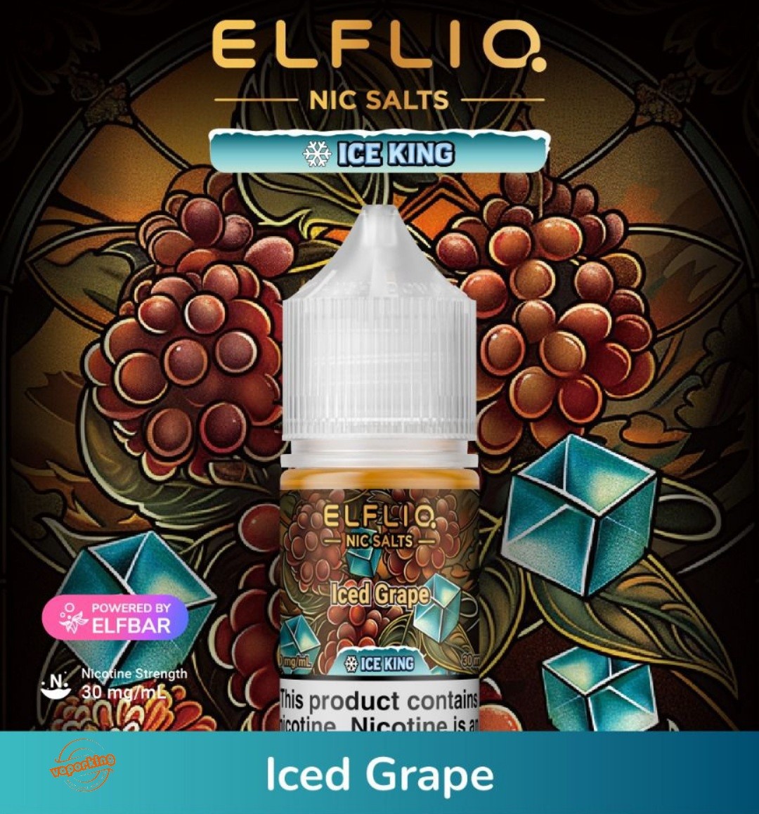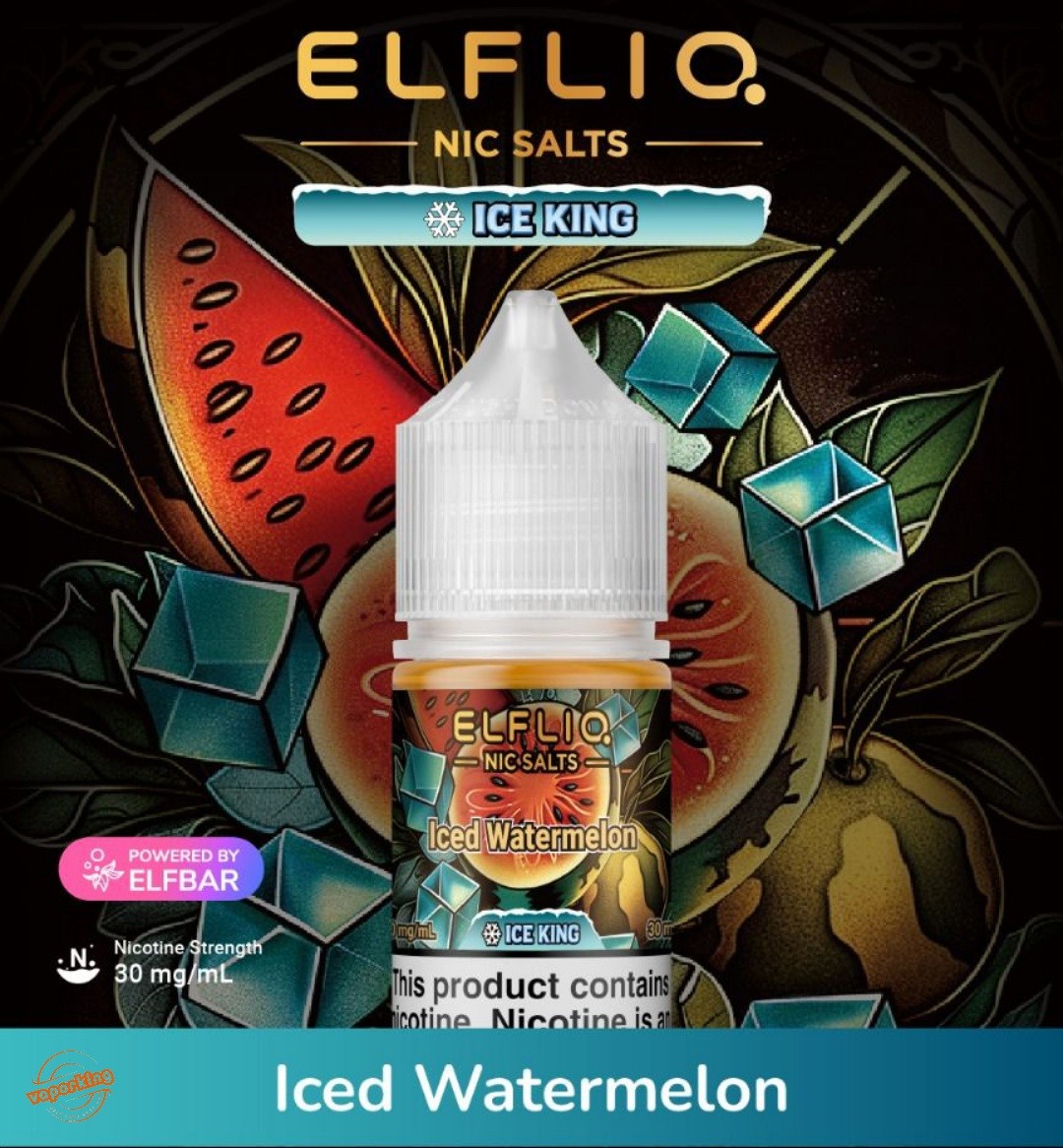 Elevate Your Vaping Experience with ELFLIQ Nic Salts 30mg Ice King – the same premium e-liquids you know and love from Elf Bar disposables, now available for your refillable pod kits, AIO devices, and MTL tanks.