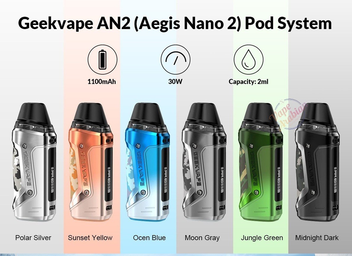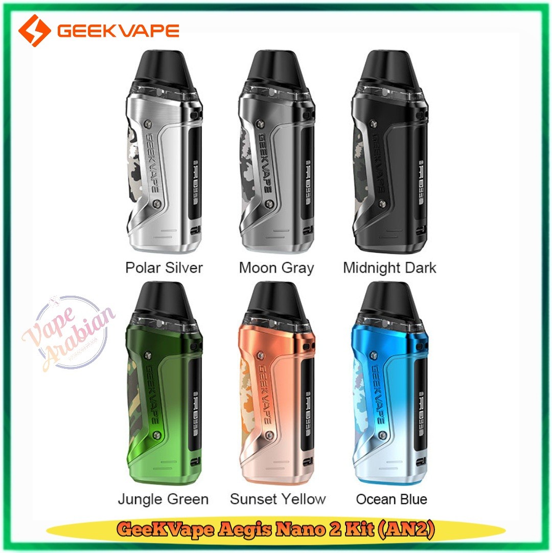 GeekVape Aegis Nano 2 Kit (AN 2) 1100mAh a compact and powerful tri-proof Pod has evolved with many feature upgrades. No matter where you are, the little monster brings the ultimate vaping experience with industry-leading Geekvape tri-proof technology and handy portability. It also provides 30W max output and precise adjustments for airflow & output. Enjoy a worry-free experience with an 1100mAh battery and leakproof design.