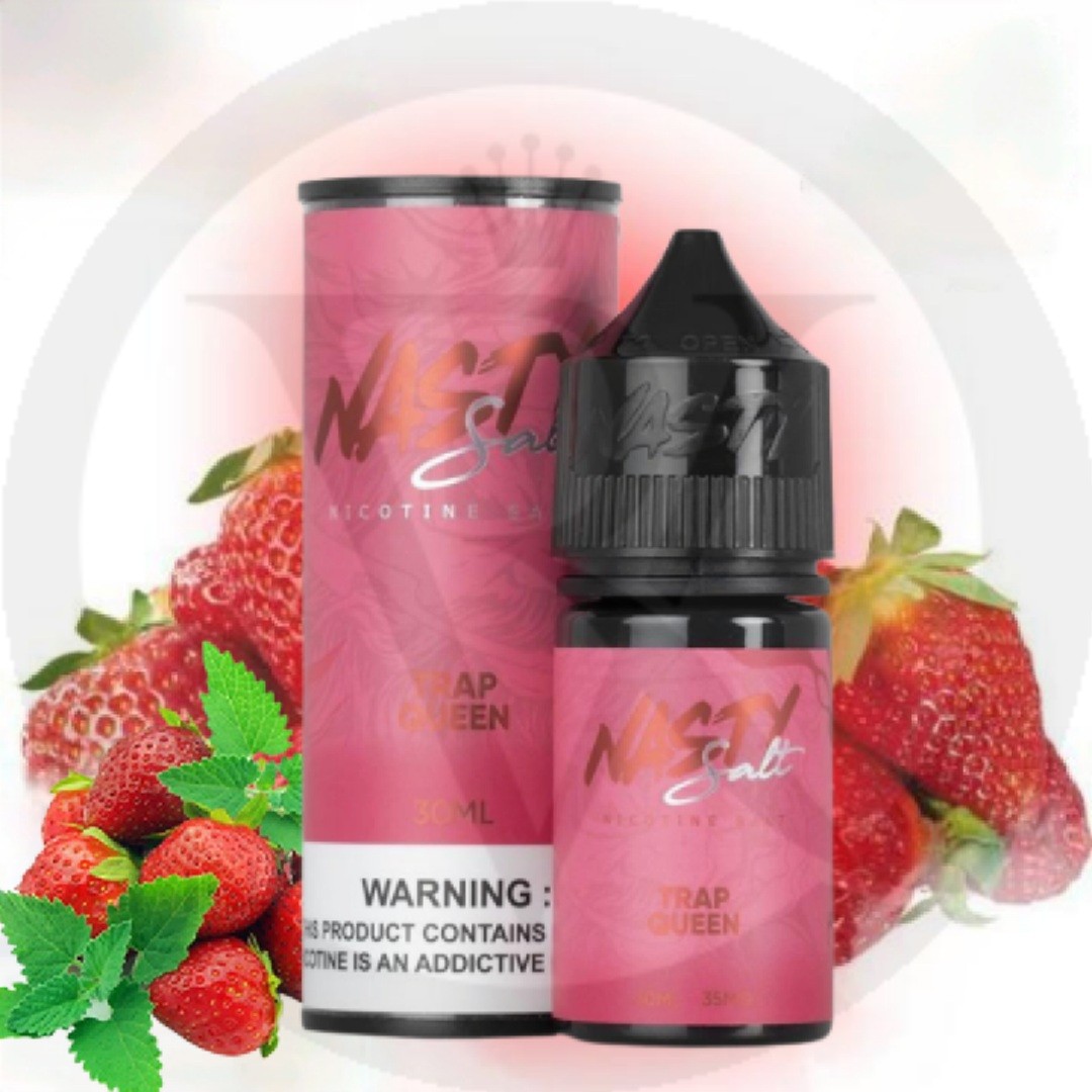 Trap Queen eLiquid by Nasty Salt is a fruity, juicy mix of fresh sweet strawberries on the inhale, followed by a very subtle low mint on the exhale making in a perfect all-day vape. Nasty Salts comes in 30 ml compliant bottles and are available in 35 & 50 mg Nicotine salts strengths. Nicotine Salts provide a smoother throat hit than traditional freebase nicotine e-Liquids. Nicotine Salts also provide a quicker nicotine fix, this makes them ideal for beginners. Enjoy the true essence of summer strawberries with Trap Queen by Nasty Salt. Each vape will rush your taste buds with ripe strawberries that’ll make you swear it’s the real deal.