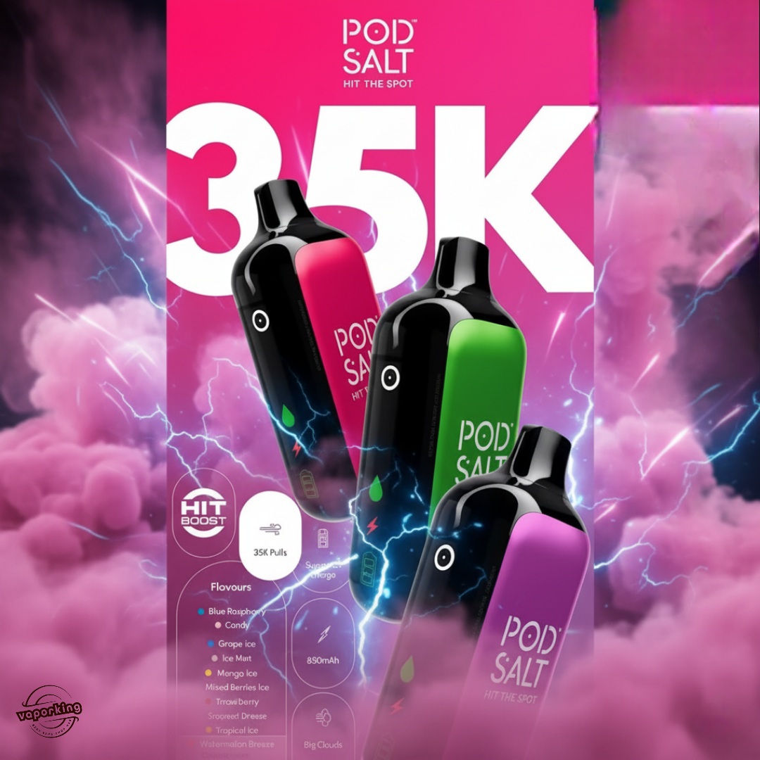 Pod Salt 35K Disposable Vape brings next-level performance to your fingertips, combining power, precision, and rich premium flavors in a smooth, easy-to-use design. Built to last with an incredible 35,000 puff capacity, Pod Salt 35K Disposable Vape device delivers weeks of smooth and satisfying vaping without the hassle of constant replacements. Thanks to its advanced coil technology and rechargeable battery, every puff is consistent—full of bold flavor and satisfying vapor from start to finish.