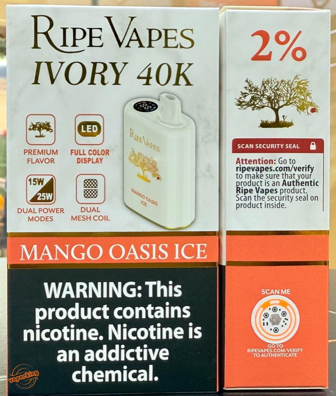 Package Contents Include of Ripe Vapes IVORY 40000 Puffs: