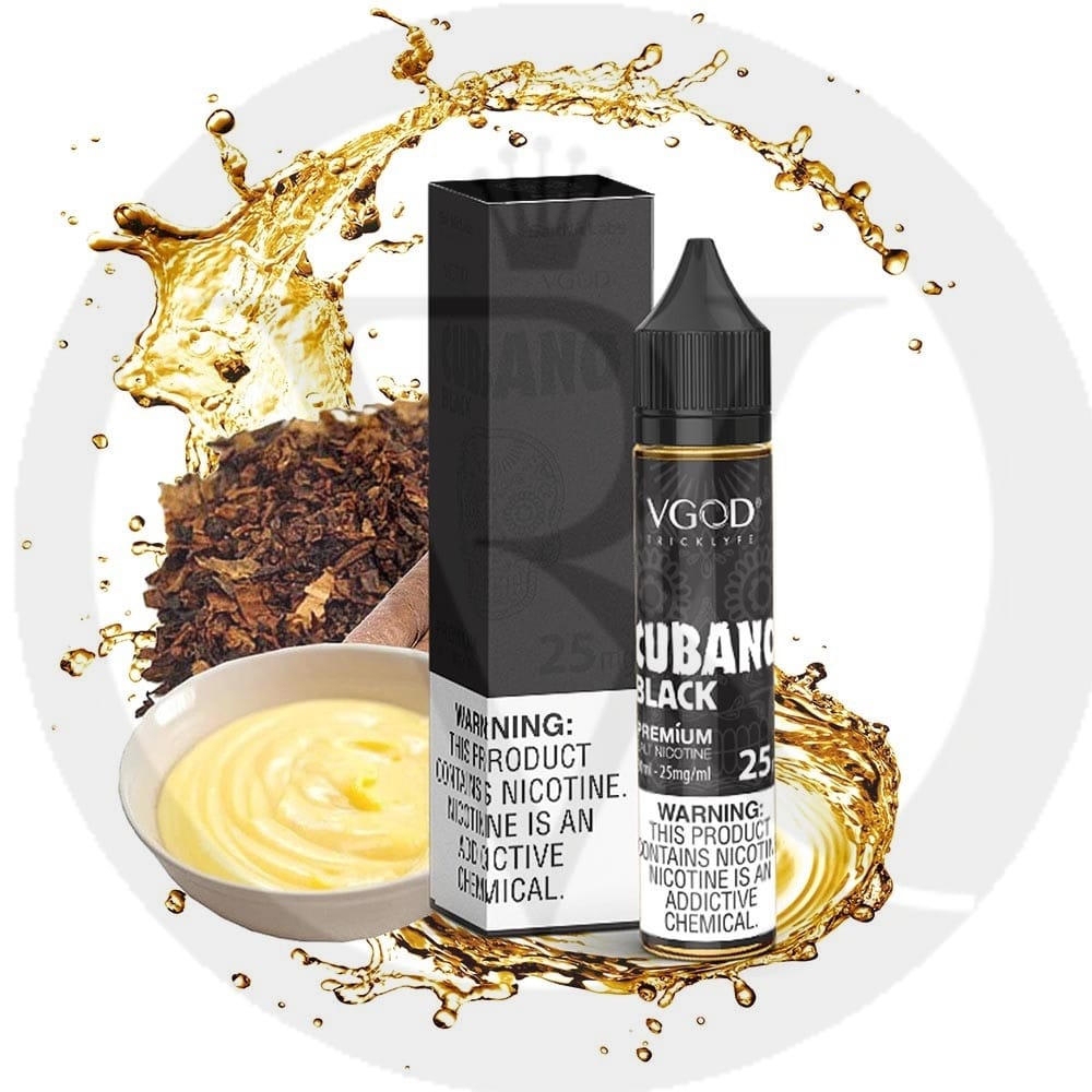 VGOD Cubano Black Salt Nic is The most intense, delicious, and authentic Cuban cigar flavor with an interesting twist! Cubano Black by VGOD Tricklyfe E Liquids is a spectacularly complementary blend of rich, deep tobacco and smooth, creamy vanilla custard that will make this vape go down so easy and pleasant. Inhale tobacco and exhale that yummy sweetness all with a velvety smooth feeling that will have you obsessed with it.