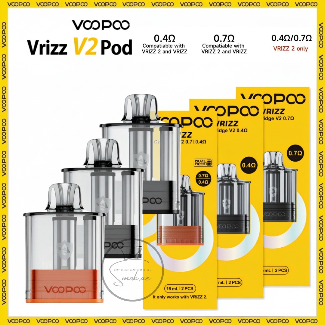 - Resistance: 0.4ohm, 0.7ohm, Dual Mesh 0.4ohm/0.7ohm (Only for VOOPOO VRIZZ 2 Pod Kit)